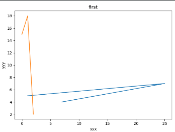 plit.plot([1, 25, 7], [5, 7, 4], [15, 18, 2], linewidth=5)plit.title('first', fontsize=24)//设置字体plit.xlabel('xxx', fontsize=24)plit.ylabel('yyy')plit.tick_params(axis='both', labelsize=14)  //设置刻度plit.show()   画正弦余弦:import matplotlib.pyplot as plit